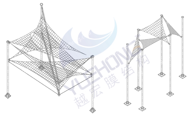 越宏膜結(jié)構(gòu)廠家的景觀膜結(jié)構(gòu)是由鋼結(jié)構(gòu)和膜材組成,分別有張拉式膜結(jié)構(gòu)、索膜結(jié)構(gòu)、骨架式膜結(jié)構(gòu)、空間結(jié)構(gòu)樣式供選擇,根據(jù)不同場景進行設(shè)計出個性化膜結(jié)構(gòu)。